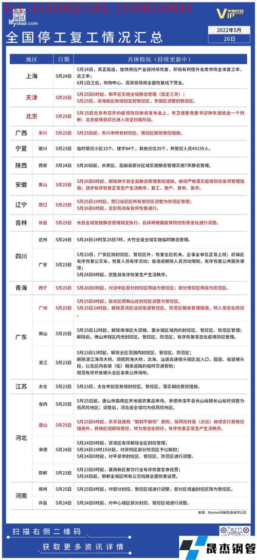 免責(zé)聲明:本網(wǎng)站(山東聊城晟杰無縫鋼管廠www.lnngx.com)刊載的“疫情影響丨全國停工復(fù)工情況匯總(5月26日)”等均源于網(wǎng)絡(luò),版權(quán)歸原作者所有,且僅代表原作者觀點(diǎn),本文所載信息僅供參考。轉(zhuǎn)載僅為學(xué)習(xí)與交流之目的,如無意中侵犯您的合法權(quán)益,請及時聯(lián)系刪除。本網(wǎng)站刊登此篇文章并不意味著本站贊同其觀點(diǎn)或證實(shí)其內(nèi)容的真實(shí)性,我們不對其科學(xué)性、嚴(yán)肅性等作任何形式的保證。如果侵犯了您的版權(quán),請盡快聯(lián)系我們予以撤銷,謝謝合作!